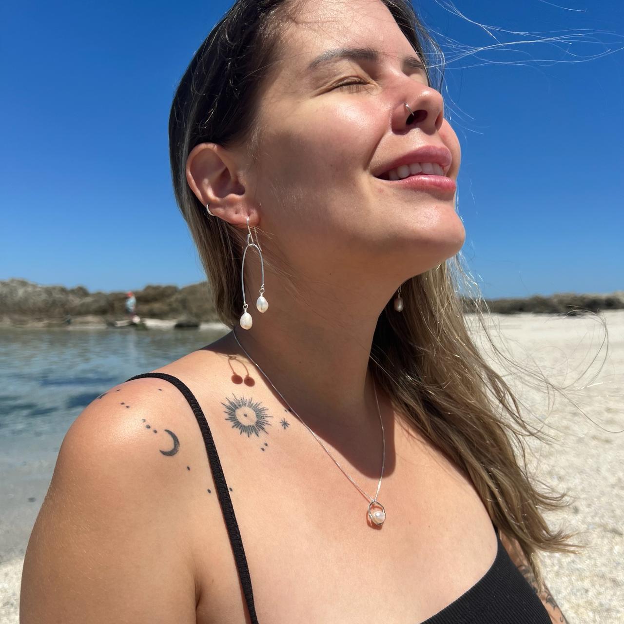 925 sterling silver wire, hammered with special texture features, accompanied by genuine Freshwater Pearls.
